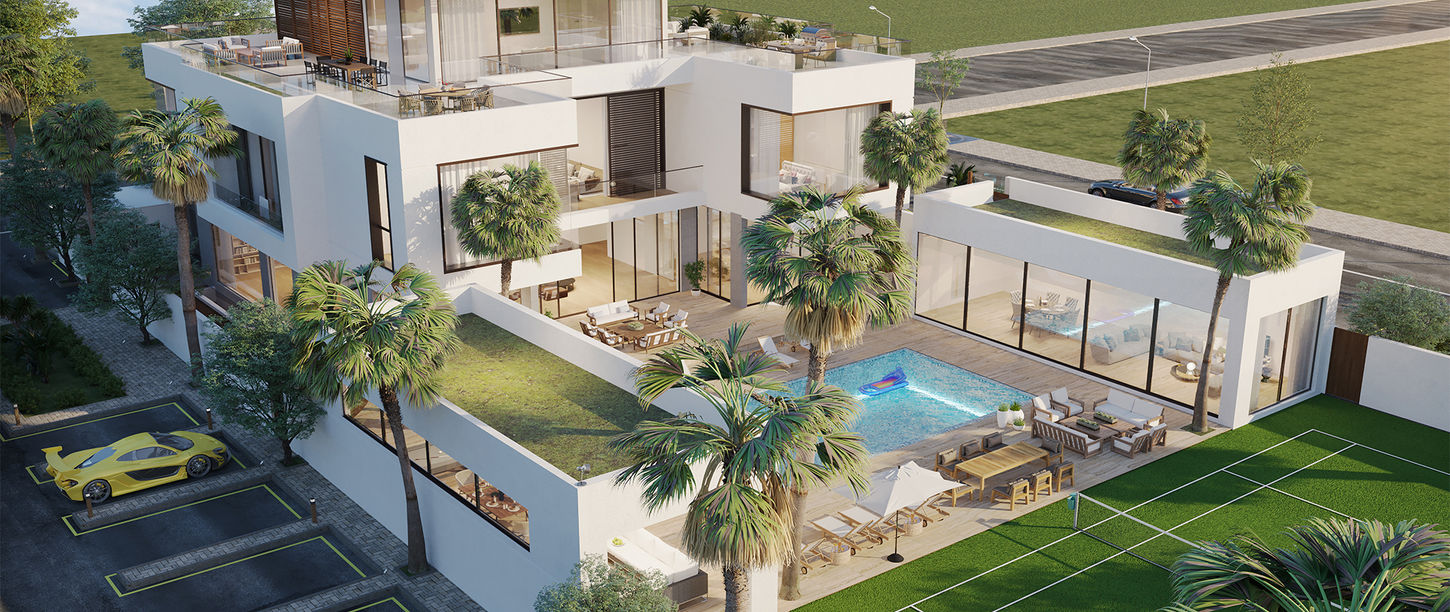 The project is a modern villa with a private pool and a tennis court, high-end finishes and a complete set of amenities, designed for comfort, tranquility and luxury lifestyle.
